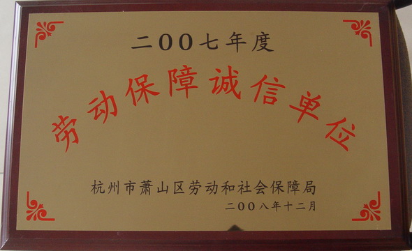 被杭州市蕭山區(qū)勞動和社會保障局評為2007年度勞動保障誠信單位。