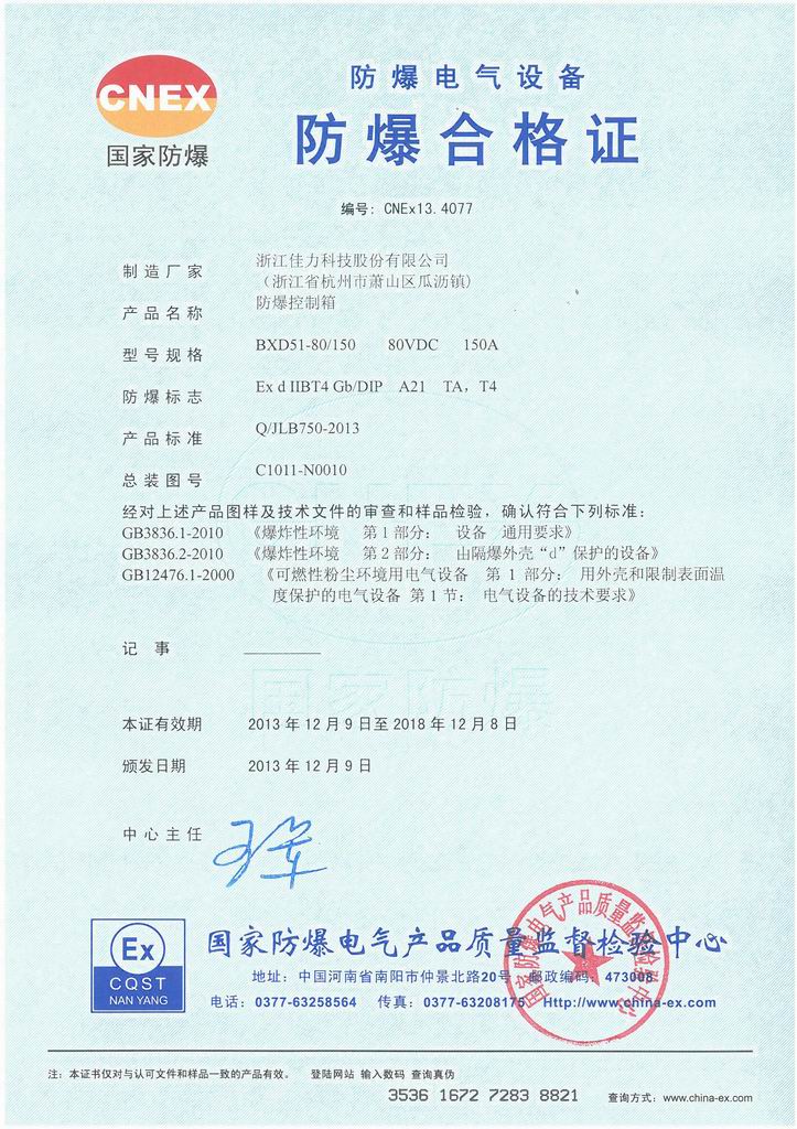 防爆證書>>詳細信息